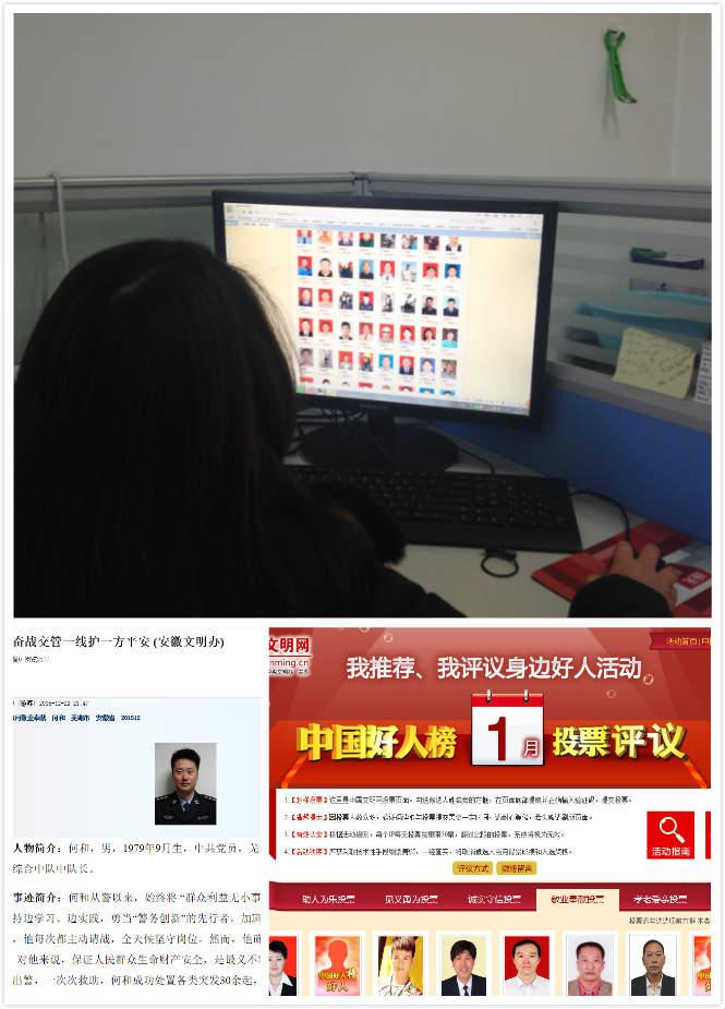 本次候選850位好人來自全國各地,其中,勇當“警務創新”的先行者何和就是安徽人,他是蕪湖市公安局交警支隊大橋大隊綜合中隊中隊長,他從警以來,舍小家為大家奮戰在交管一線護一方平安 ,全心全意為人民服務的精神是最值得我們學習的地方。
