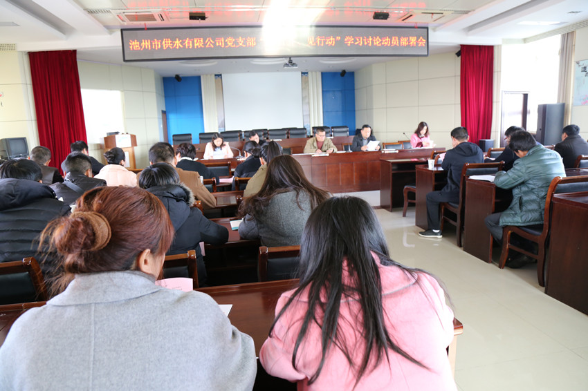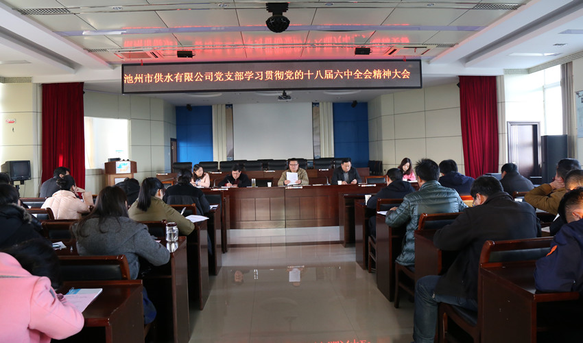 2016125日,市供水公司黨支部在公司四樓會議室開展 “講看齊、見行動”學習討論動員部署會暨深入學習貫徹黨的十八屆六中全會精神大會,公司組織委員包洪全主持會議,公司全體黨員同志及入黨積極分子參加了會議。