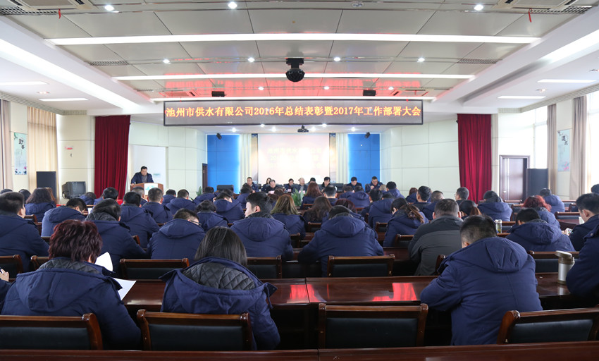 2017年1月9日,在這個(gè)美好的日子里,池州供水人承載著2016年的豐收,滿懷著對(duì)2017年希望和憧憬,在公司四樓會(huì)議室召開了池州市供水有限公司2016年工作總結(jié)表彰暨2017年工作部署大會(huì)。深圳水務(wù)集團(tuán)黨委副書記吳建飛、池州市國(guó)資委主任金緒友、池州市公用事業(yè)局局長(zhǎng)李應(yīng)友、深圳水務(wù)投資公司總經(jīng)理雷霆及公司全體員工共170余人參加會(huì)議。