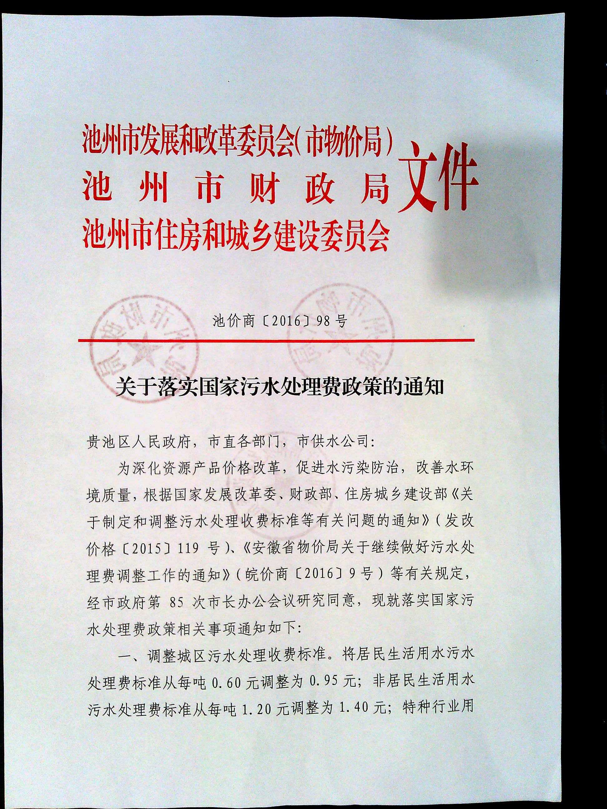 | 關(guān)于落實(shí)國(guó)家污水處理費(fèi)政策的通知 | |