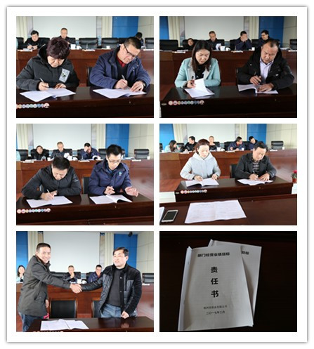 接著,公司領(lǐng)導(dǎo)與各部門負(fù)責(zé)人逐一簽訂了公司《2017年部門經(jīng)營(yíng)目標(biāo)責(zé)任書》、《2017年安全生產(chǎn)“一崗雙責(zé)”責(zé)任書》,并由相關(guān)部門負(fù)責(zé)人做表態(tài)發(fā)言。