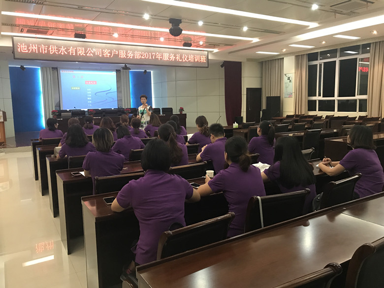 為塑造公司窗口部門的儀容儀表和精神面貌,進(jìn)一步規(guī)范服務(wù)行為,提高服務(wù)水平,打造服務(wù)標(biāo)桿窗口,池州市供水有限公司于2017年9月21日晚,在四樓會議室舉辦了服務(wù)禮儀培訓(xùn)。此次培訓(xùn)邀請了池州學(xué)院商務(wù)禮儀張利萍老師主講,公司客服中心、各營業(yè)所、熱線辦等20多名窗口服務(wù)人員參加培訓(xùn)。