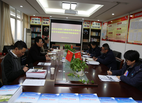 首先吳小平總經理從組織領導、理想信念、道德文明風尚、文化建設、單位管理、環境衛生、綜合效益等七個方面向考核組一行仔細匯報了公司三年來市級文明單位創建工作取得的成績,隨后檢查組一行仔細查看了文明創建工作臺帳、現場環境、創建氛圍營造等,并組織部分員工進行了文明創建知識測試。