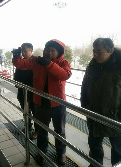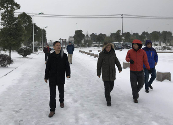 2018年1月27日上午,池州市住建委主任張良浩、副主任許作峰、公用事業(yè)局李應(yīng)友局長在池州市供水有限公司鐘誠董事長、寧加寶副總經(jīng)理的陪同下,一行冒冰雪嚴寒來到池州市供水有限公司江口水廠檢查暴雪天氣供水安全生產(chǎn)情況。