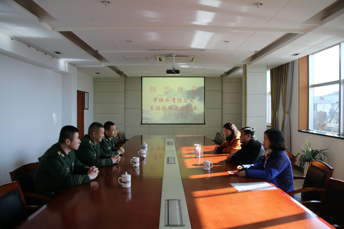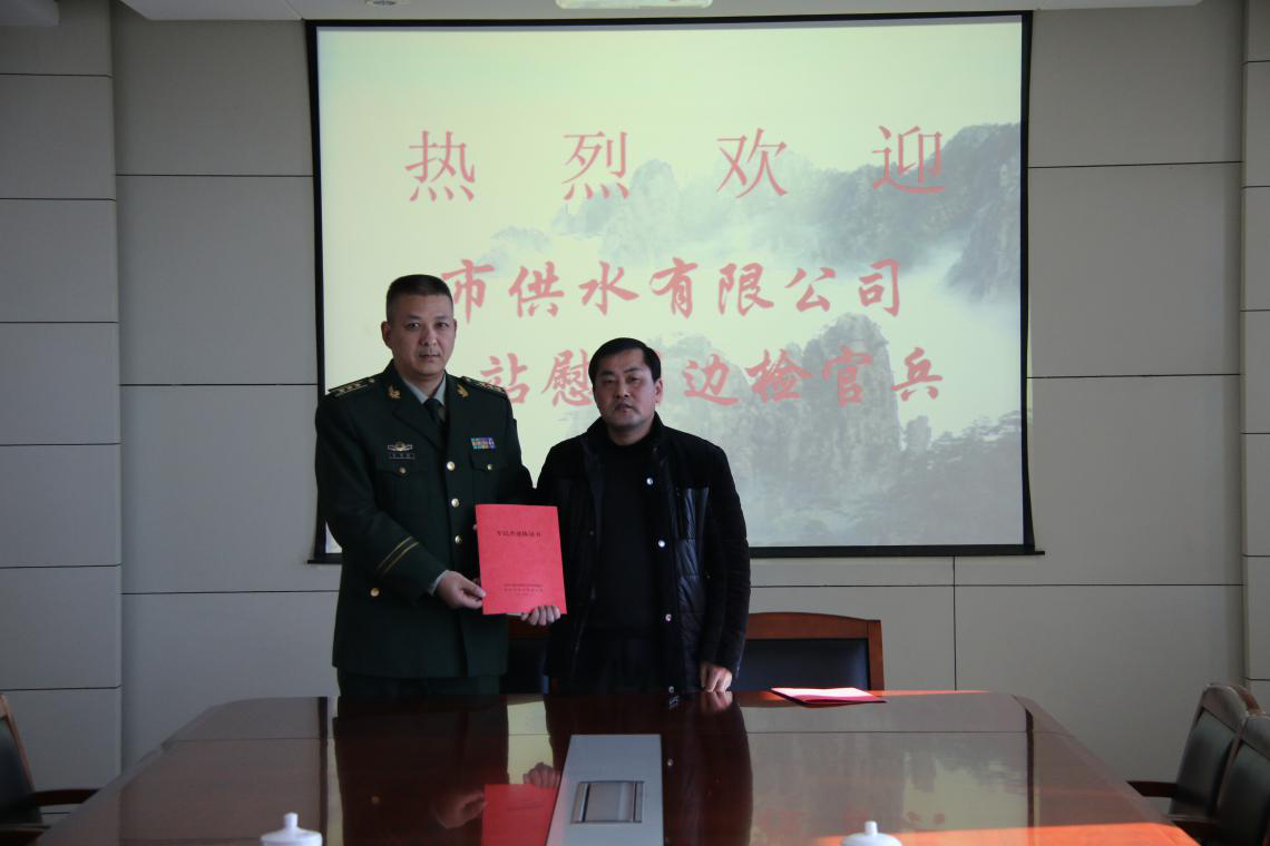 在新春佳節(jié)即將到來(lái)之際,2月12日上午,池州市供水有限公司副總經(jīng)理包洪全、董事王忠榮等一行,來(lái)到池州邊防檢查站開展慰問(wèn)工作,看望部隊(duì)官兵,與部隊(duì)負(fù)責(zé)同志親切座談,并代表公司和公司全體員工,向邊防站的所有官兵致以節(jié)日的問(wèn)候。
