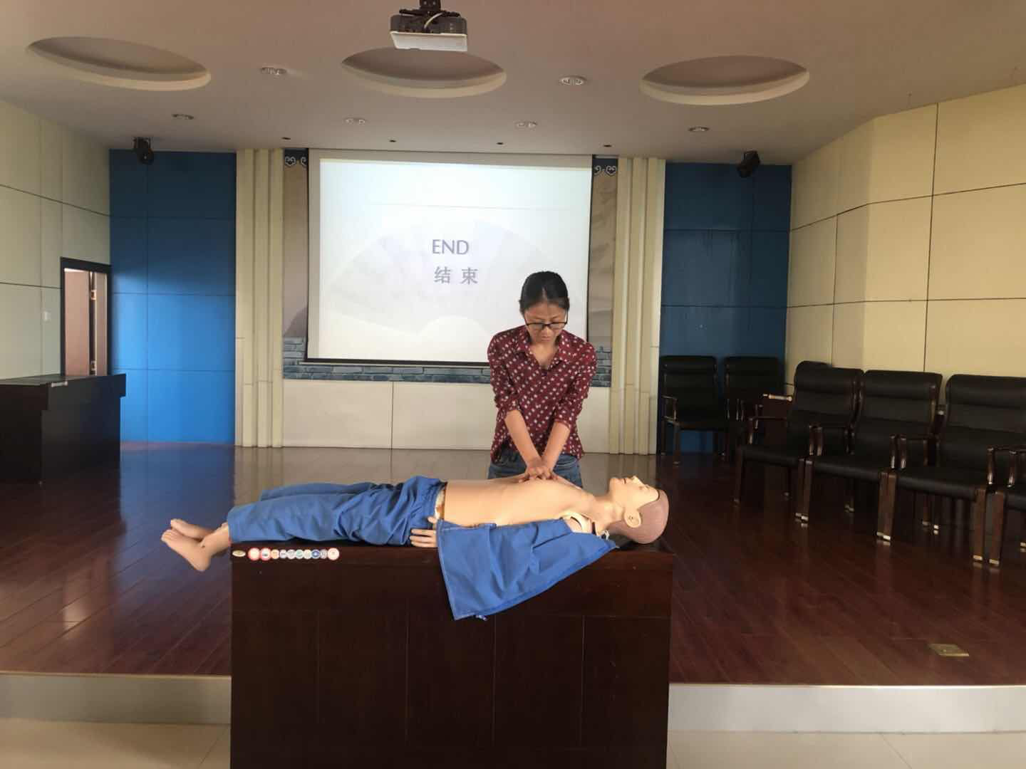 在現(xiàn)場實際操作當中吳主任為大家準備了1個需要搶救的“模擬人”,他親自示范,為大家詳細的展示了做胸外心臟按壓和人工呼吸的步驟及其中要注意的關鍵細節(jié)。培訓激發(fā)了現(xiàn)場人員濃厚的興趣,躍躍欲試。董事長鐘誠第一個走到“模擬人”前進行模擬操作,現(xiàn)場氣氛十分活躍。