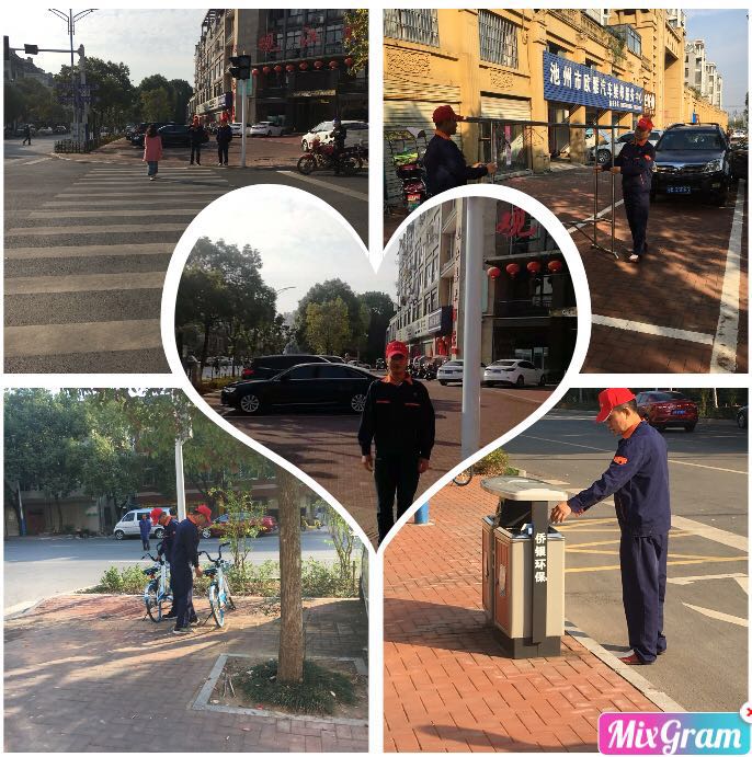 志愿者們走上街頭、對聯系路段擺放混亂的共享單車、電動車等進行整理擺放整齊;清理白色垃圾、墻壁、路燈等地的小廣告