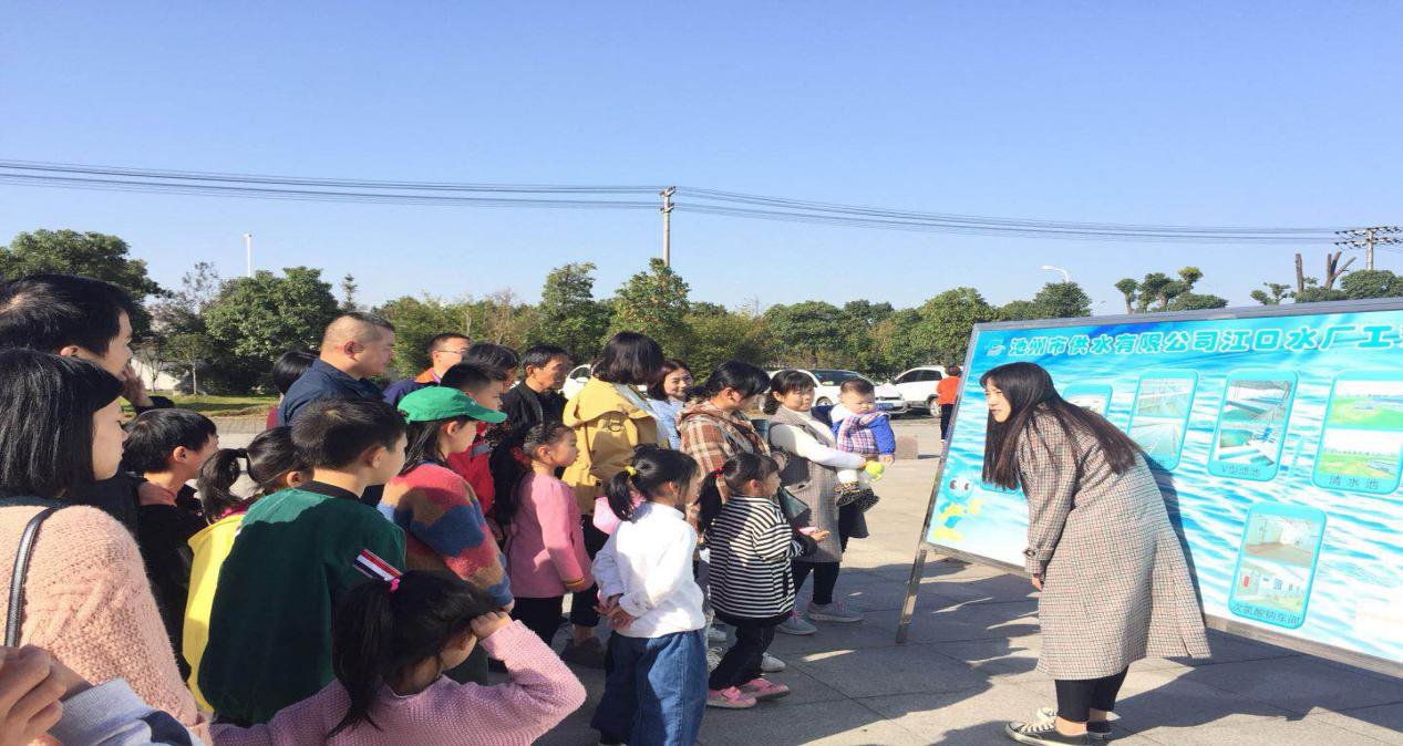 當天上午9點,大家準時來到了江口水廠。這場活動很特別,其主角是一群3-12歲的小朋友,他們的父母均是池州市供水有限公司的員工。小朋友在父母的長久熏陶下,從小就對自來水知識耳濡目染,這次他們利用周末時間,踴躍報名,親身感受長江水從渾濁慢慢變清澈的過程。