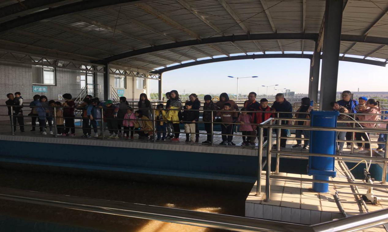 在講解員的帶領(lǐng)下,小朋友們井然有序地對水廠進行參觀,實地感受制水過程。他們分批次的先后參觀過加藥間、加氯間、水力折板絮凝池、V型濾池、清水池、送水車間、化驗室、等全部制水環(huán)節(jié),見證了自來水從渾濁到清澈的漸變過程,為了滿足小朋友們的好奇心,還特意安排了現(xiàn)場觀看氣水反沖洗過程環(huán)節(jié)。讓小朋友們了解制水工藝繁瑣嚴謹,我們家中的自來水來之不易。