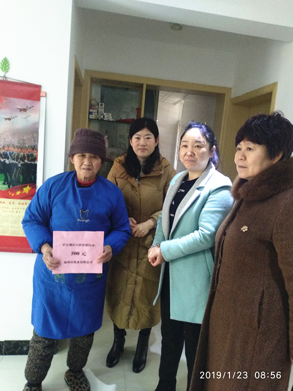 隨著春節(jié)的臨近,為幫助社區(qū)特困戶(hù)度過(guò)一個(gè)安靜祥和的新年,1月23日上午,池州市供水有限公司副經(jīng)理王忠榮帶隊(duì)對(duì)東湖社區(qū)、平天湖社區(qū)特困戶(hù)進(jìn)行了新春慰問(wèn)。