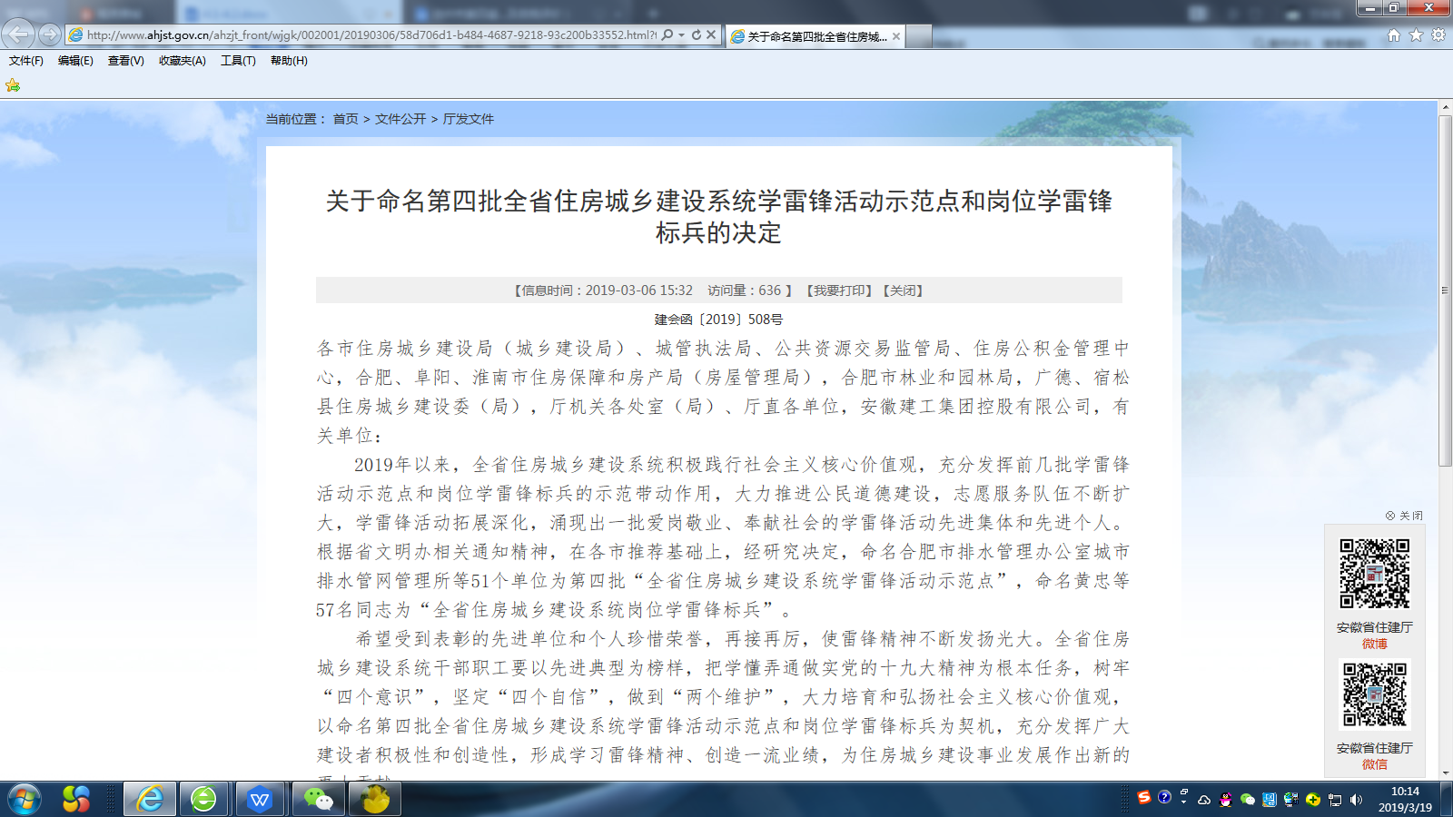 為深入學(xué)習(xí)貫徹黨的十九大精神,推動(dòng)學(xué)雷鋒活動(dòng)常態(tài)化,大力培育和弘揚(yáng)社會(huì)主義核心價(jià)值觀,3月6日,省住建廳命名了一批學(xué)雷鋒活動(dòng)示范點(diǎn)和崗位學(xué)雷鋒標(biāo)兵,池州市供水有限公司客戶服務(wù)中心榮獲第四批省住房城鄉(xiāng)建設(shè)系統(tǒng)“學(xué)雷鋒示范崗”榮譽(yù)稱號(hào)。