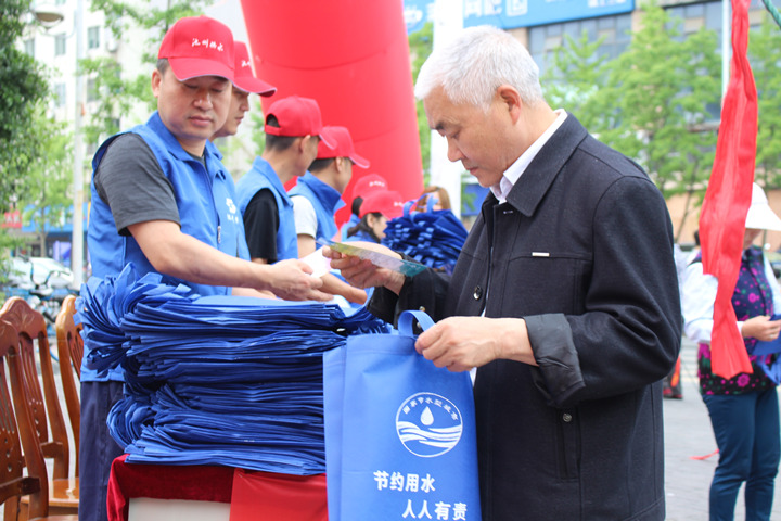 活動(dòng)設(shè)置了宣傳臺(tái),志愿者們通過向來往的市民分發(fā)節(jié)水宣傳資料和環(huán)保袋,講解生活中一些節(jié)約用水的小知識(shí),提倡使用節(jié)水型生活用水器具,來往市民紛紛駐足聆聽。