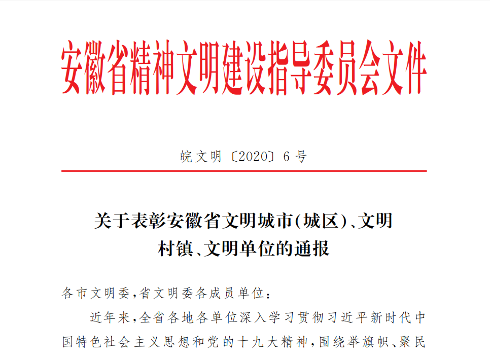 “我們將以此次成功爭創省級文明單位為契機,進一步探索文明單位創建工作規律、創新內容和載體,增強創建工作的前瞻性、主動性和創造性,將精神文明建設融入日常工作,緊緊圍繞安徽省委、省政府的工作部署,不斷深化群眾性精神文明創建工作,為建設美麗幸福現代化安徽,共繪新時代安徽物華天寶、人杰地靈新畫卷,做出新的更大貢獻。”公司負責人表示。