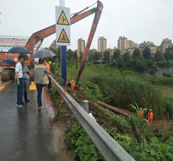 7月6日中午,公司工作人員在生產過程發現數據異常,立即匯報公司相關領導。公司迅速行動,組織人員在城區內進行管線精準巡查,在沿江路下小河邊發現管道爆裂出水。經搶修人員仔細的現場勘查,初步斷定由于管道處于道路邊坡,土基受連日暴雨沖刷而塌陷,導致管道受力不均、斷裂。險情就是命令,搶修就是責任,為盡快修復爆管,搶修人員根據現場情況,認真研究、制定搶修方案,并立即著手準備搶修材料。