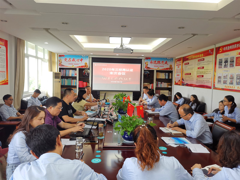 71317日,池州市供水有限公司順利通過了上海恩可埃認證公司“三標一體”再認證及職業健康體系(ISO 45001:2018)轉版的現場審核。公司總經理李張兵、副總經理包洪全出席會議,各部門負責人、內審員參加了首、末次會議。