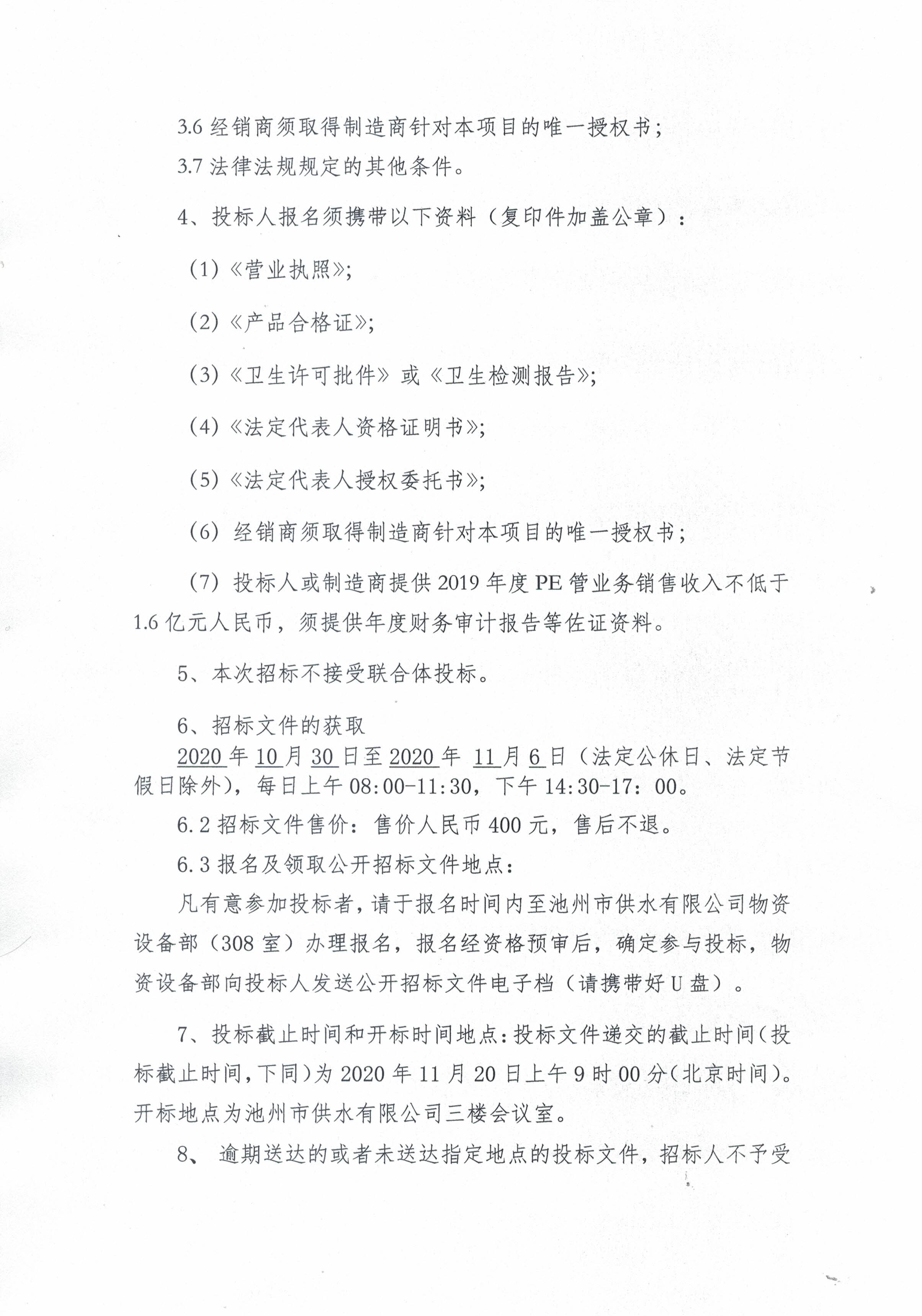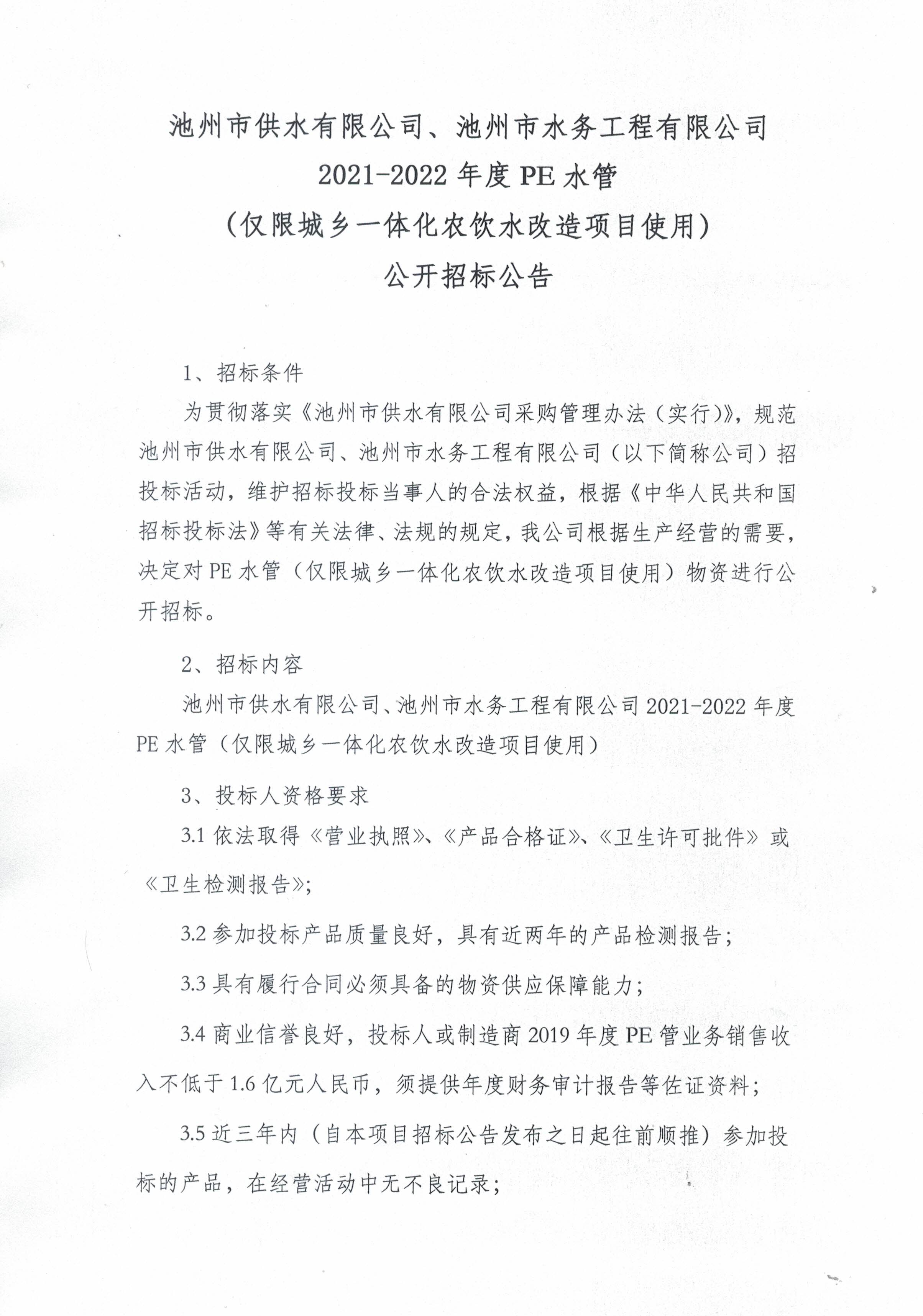 | 池州市供水有限公司、池州市水務工程有限公司.2021-2022年度PE水管(僅限城鄉一體化農飲水改造 | |