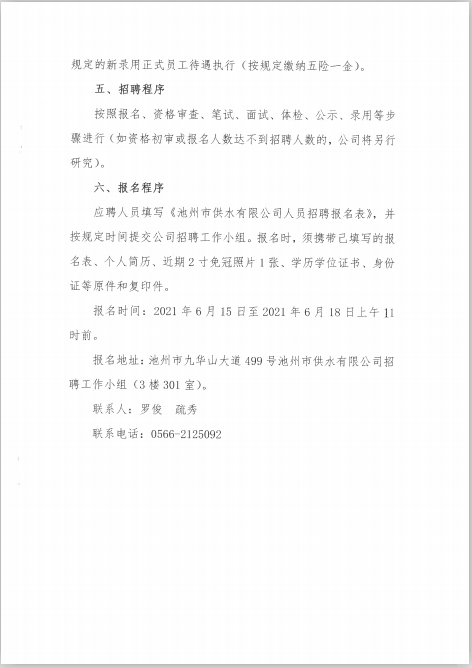 | 池州市供水有限公司招聘簡章 | |