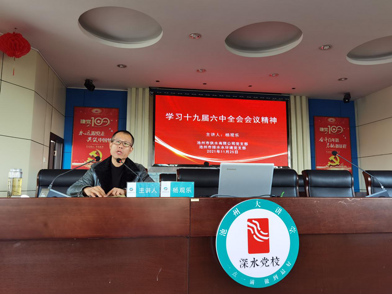11月25日,池州市供水、排水、水環(huán)境公司黨支部聯(lián)合開(kāi)展深水黨校·池州大講堂第7期,支部書(shū)記楊觀樂(lè)傳達(dá)學(xué)習(xí)黨的十九屆六中全會(huì)精神,宣傳委員施潔上《一樣的初心,不一樣的精彩》專題黨課。