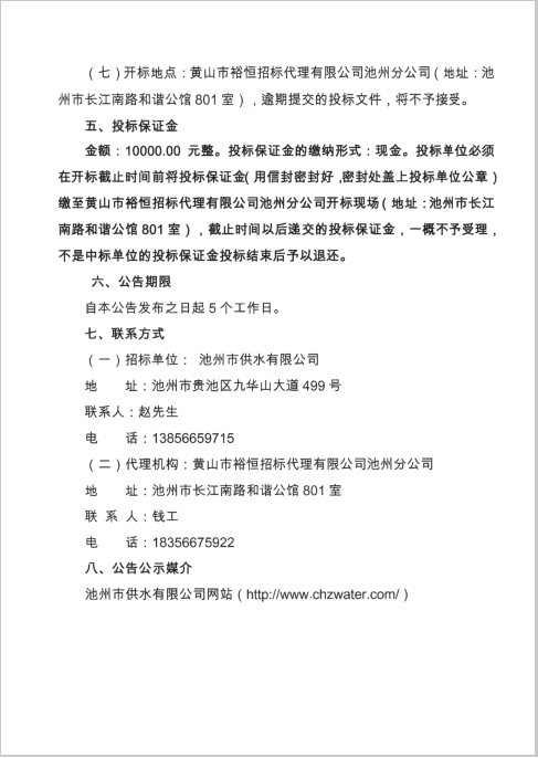 | 池州市供水有限公司車輛定點保險采購項目(第二次)招標公告次) | |