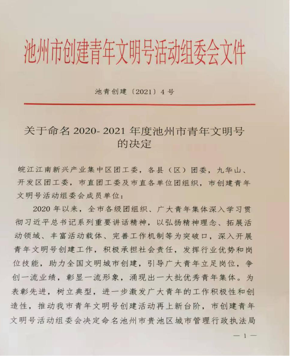近日,共青團委聯合多個單位共同發布《關于命名2020-2021年度池州市青年文明號的決定》,經過長期的努力和奮斗,池州供水公司熱線中心從眾多創建集體中脫穎而出,獲評2021年度市級“青年文明號”稱號!這也是熱線中心繼2015年之后,再次榮獲該榮譽稱號。