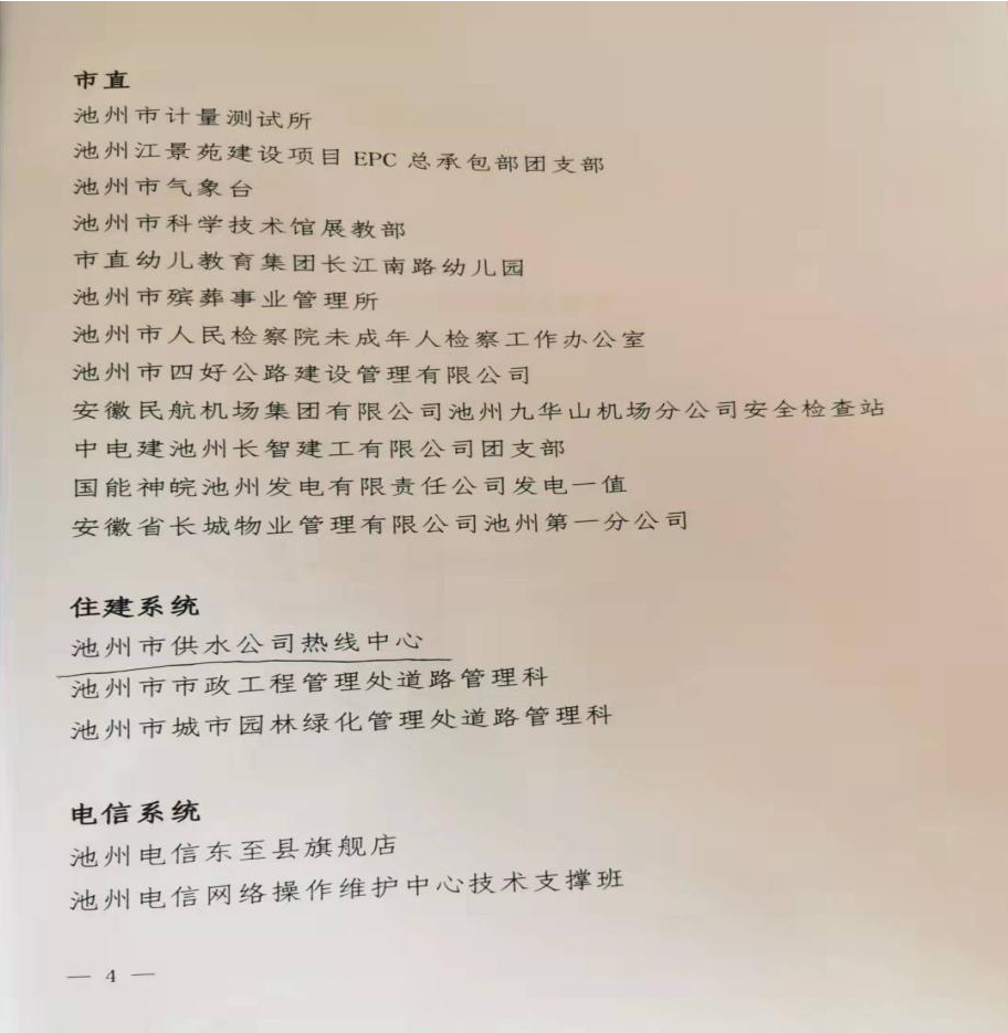 青年文明樹新風 團結奮進創佳績——池州供水公司熱線中心榮獲2021年度市級“青年文明號”稱號