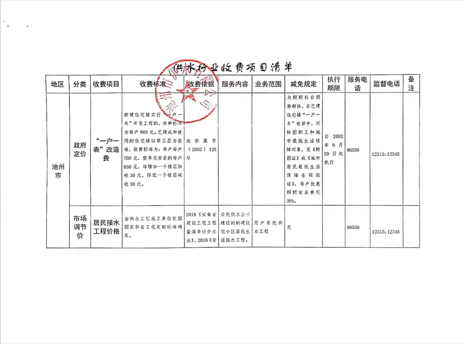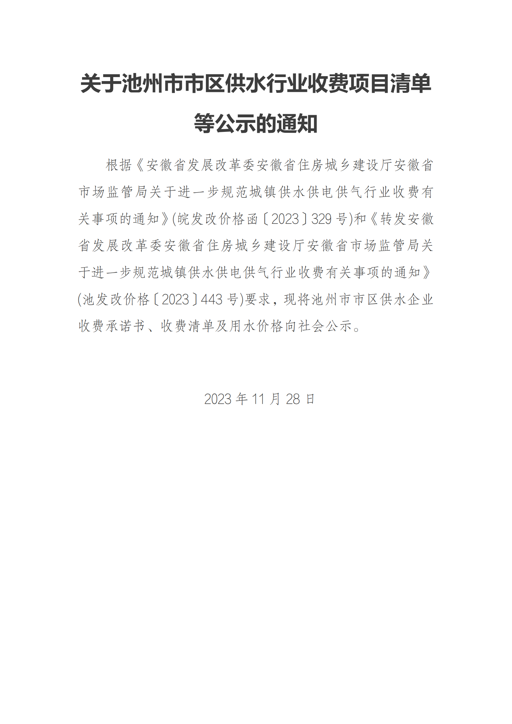 | 關于池州市市區(qū)供水行業(yè)收費項目清單等公示的通知 | |