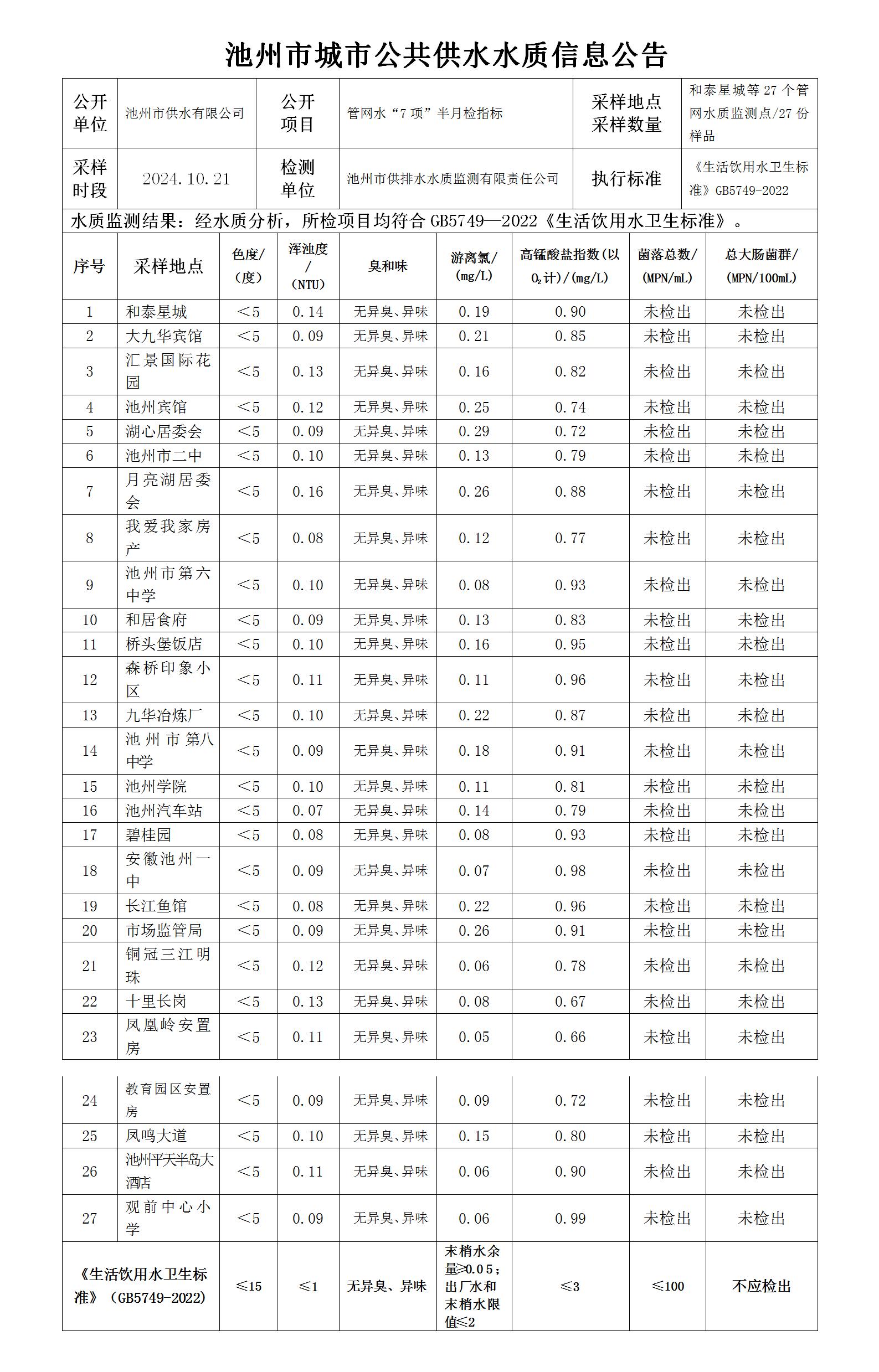 ----------------------------------------------------------------------------------- 上一篇:池州市城市公共供水水質信息公... 下一篇:2024年10月出廠及管網壓... |