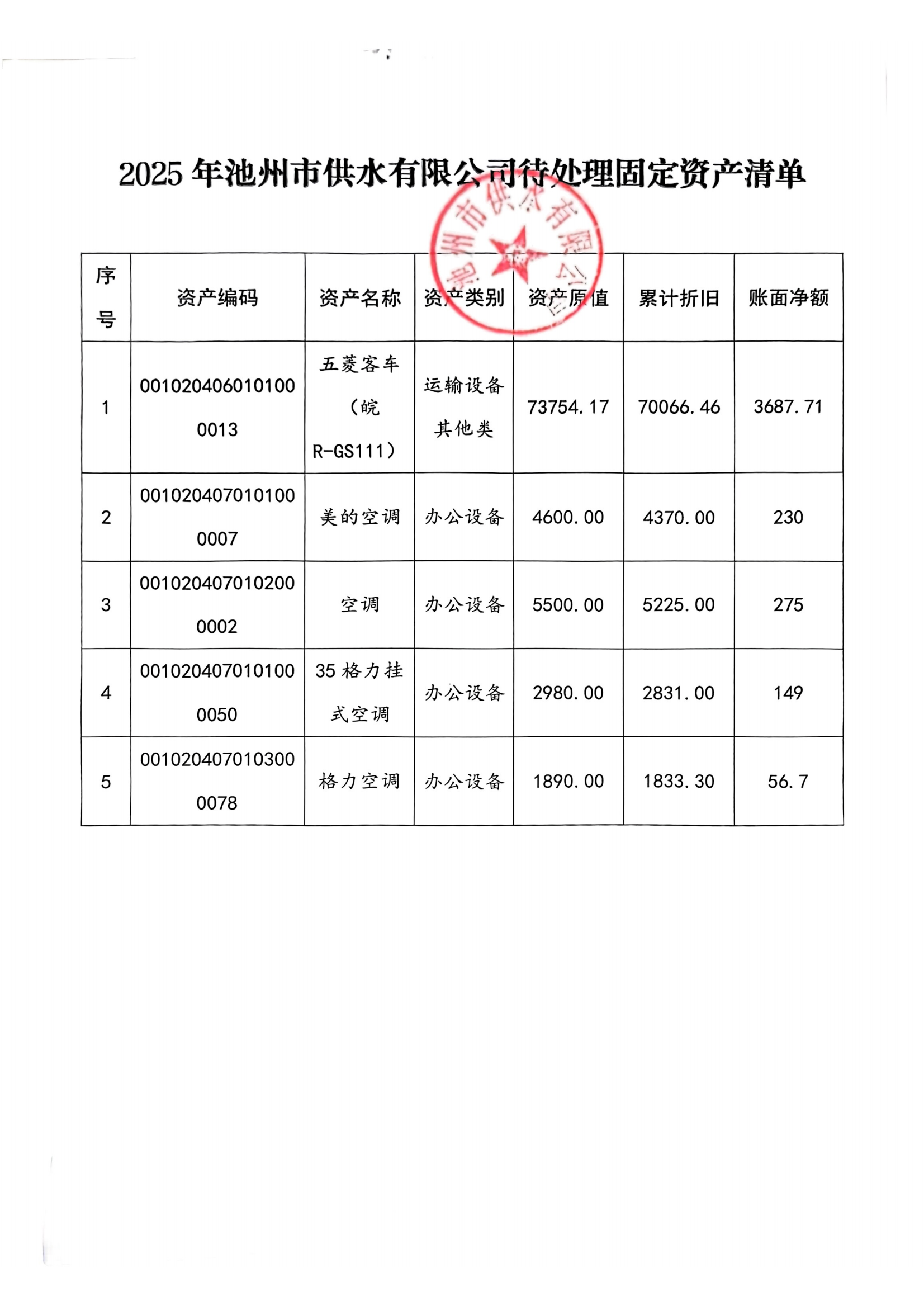 | 池州供水固定資產(chǎn)處置公示 | |