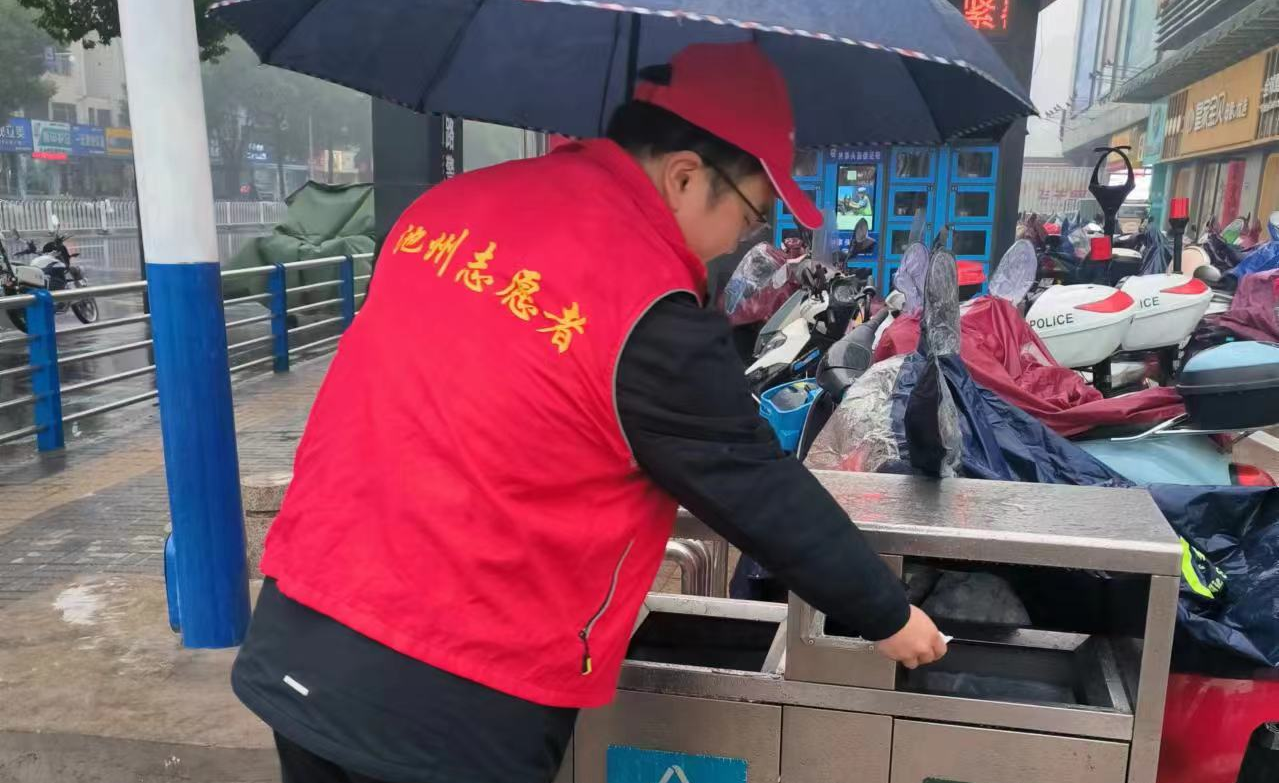 當天下午,面對突如其來的降雨,志愿者們仍然堅守崗位,積極履行職責,以高度的政治責任感和使命感,耐心細致地向過往市民普及文明乘車知識,倡導市民遵守乘車秩序、主動讓座等文明行為。