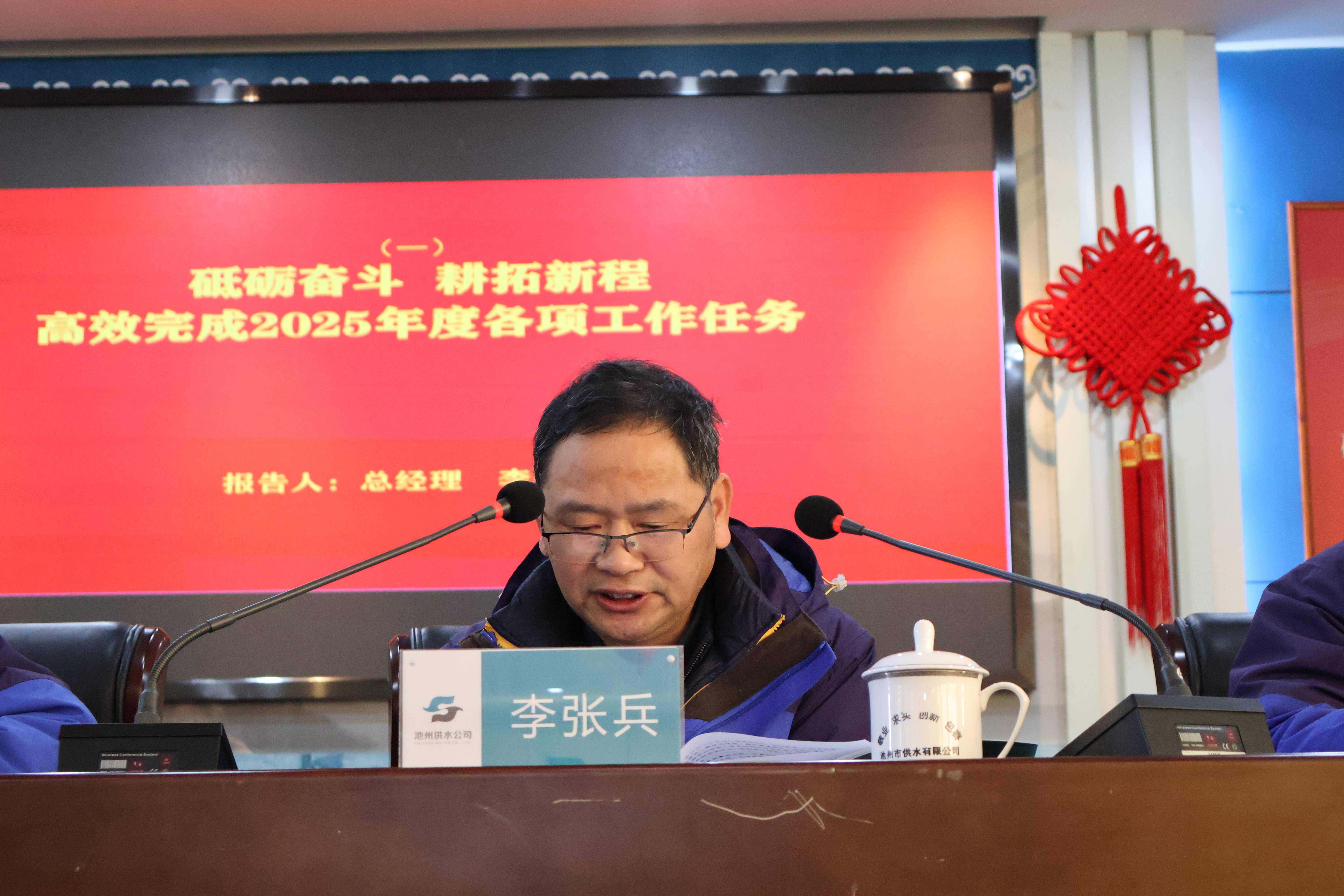 策馬揚鞭啟新程,擊鼓催征再出發(fā)。2月13日,池州供水公司召開2025年度生產(chǎn)經(jīng)營目標任務部署大會,明確發(fā)展方向,全面部署重點工作,奮力推動新一年各項工作開創(chuàng)新局面、邁上新臺階。公司除當班人員外近百人參加會議,副總經(jīng)理包洪全主持會議.