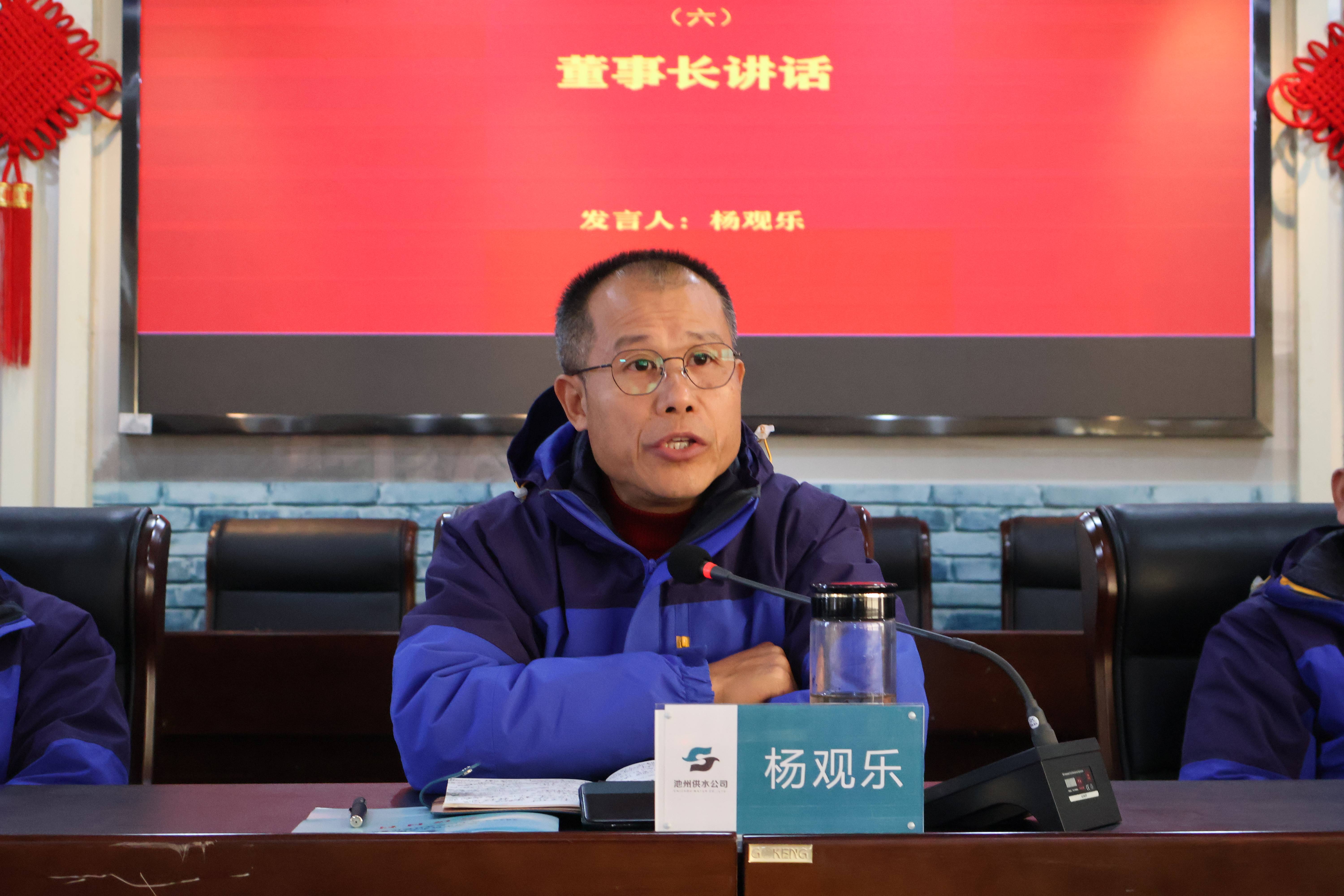 最后,公司董事長楊觀樂作總結發(fā)言。他對2025年公司工作部署以及各分管領導提出的工作要求表示肯定。他指出,萬象啟新程,篤行再奮進。2025年目標任務艱巨,大家要咬定目標、再鼓干勁、狠抓落實。他強調:一要錨定目標強執(zhí)行,建立責任體系,掛圖作戰(zhàn)確保超額完成年度任務;二要筑牢“技防+人防”雙體系,健全分級應急機制,實現(xiàn)安全管控“無孔不入、無處不在、無時無刻”;三要嚴明紀律提效能,將作風建設納入考核,建立“鐵規(guī)+常態(tài)”監(jiān)督機制;四要創(chuàng)新驅動促升級,推進管網(wǎng)智能化建設,聚力技術突破與服務提升,夯實高質量發(fā)展根基,以實干實績譜寫發(fā)展新篇。