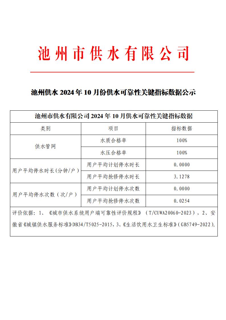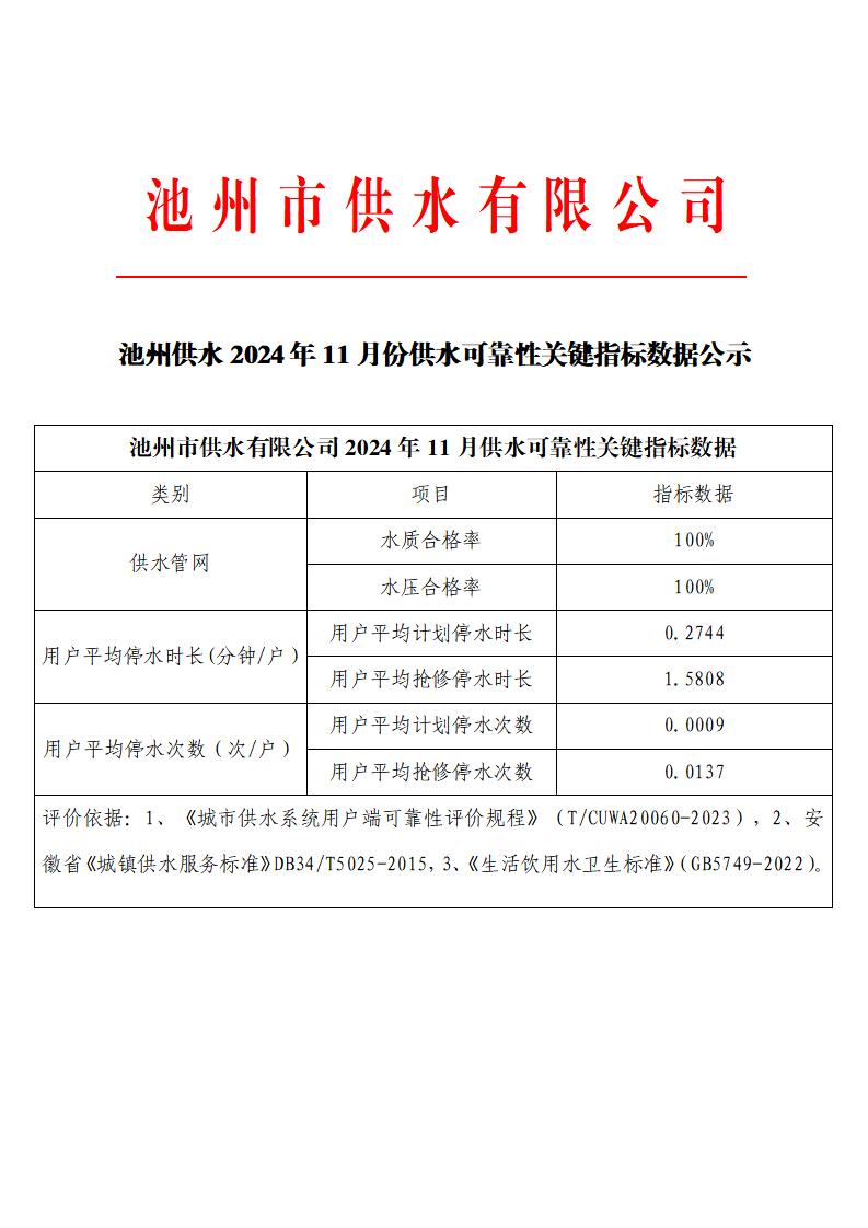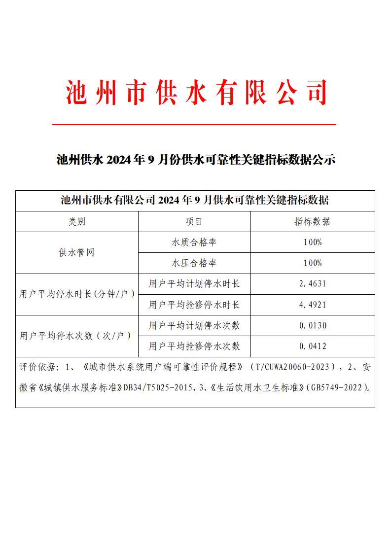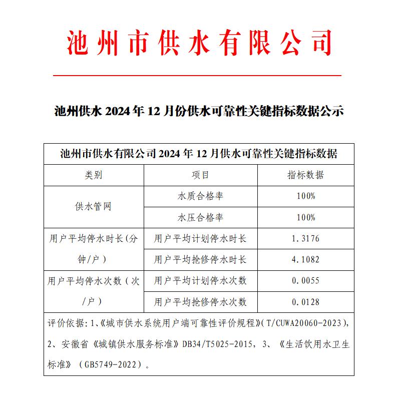 | 池州供水2024年9-12月份池州供水可靠性關(guān)鍵指標數(shù)據(jù)公示 | |