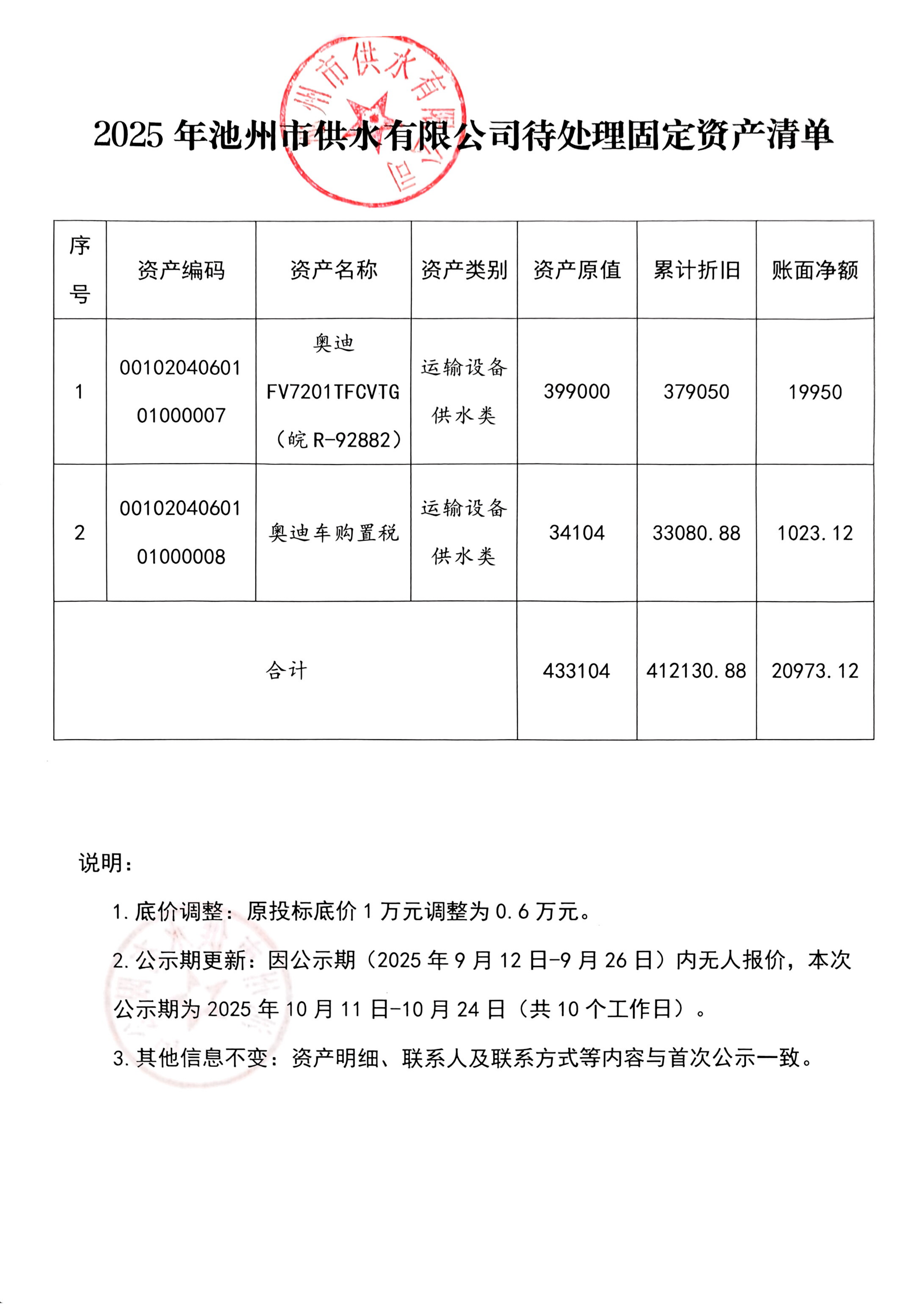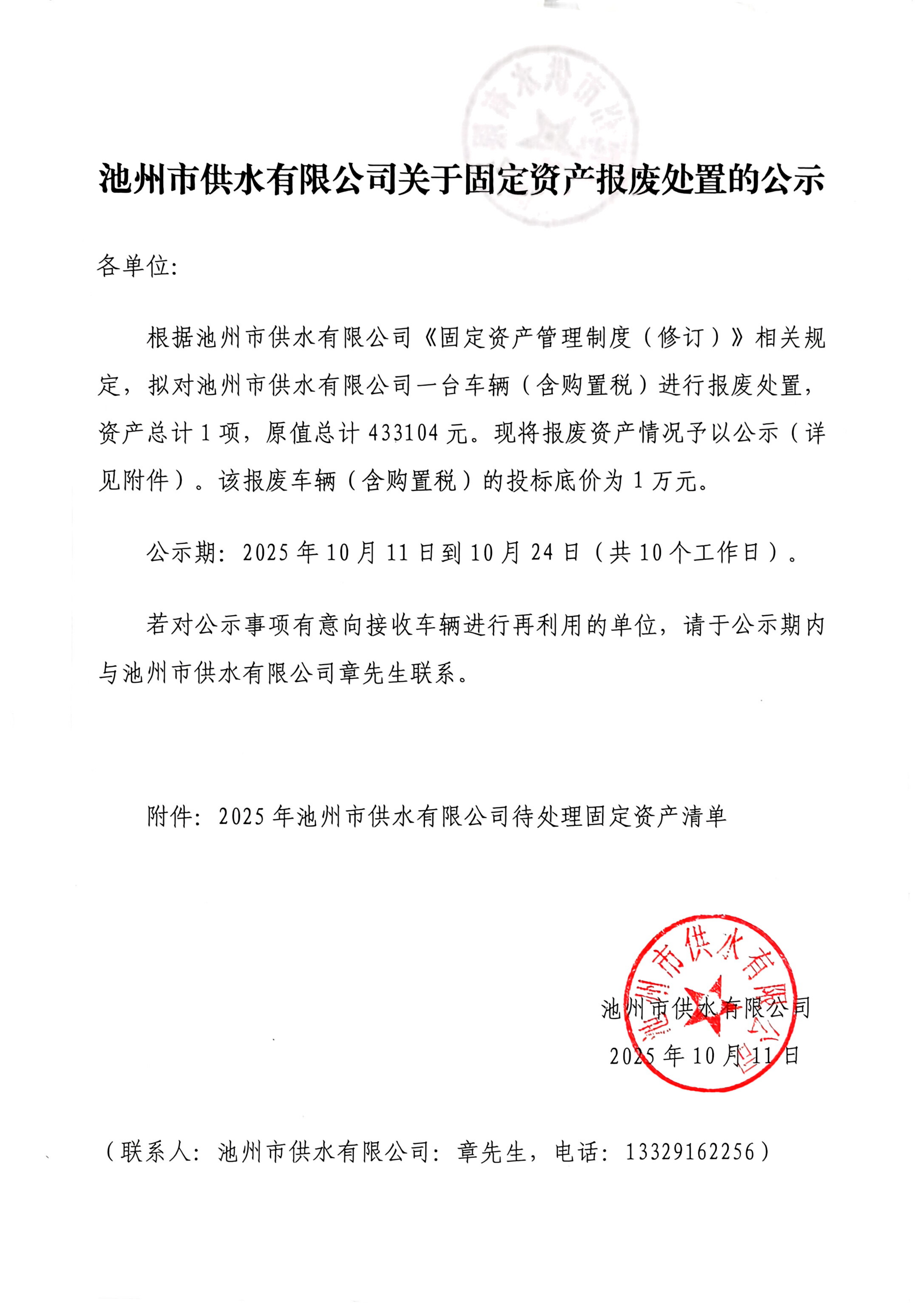 | 池州市供水有限公司關于固定資產報廢處置的公示 | |